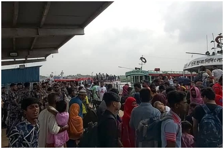 শিমুলিয়া ঘাটে ঘরমুখী মানুষের চাপ
