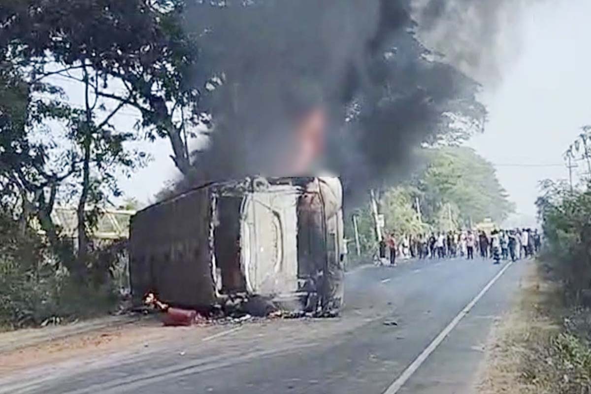 ঢাকা-চট্টগ্রাম মহাসড়কে নিয়ন্ত্রণ হারিয়ে চলন্ত বাসে আগুন, নিহত ৪