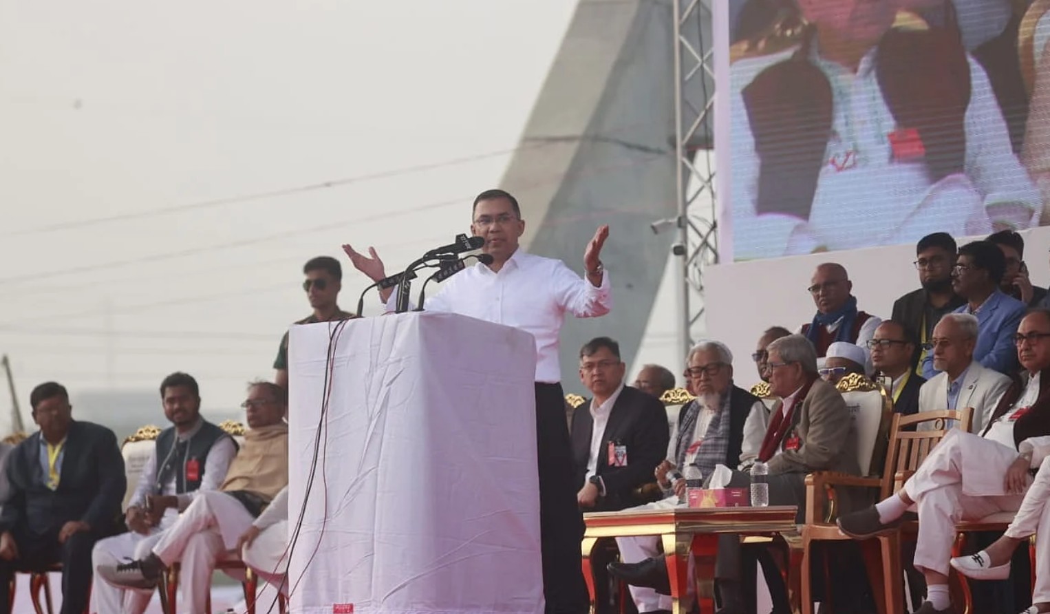 ‘এই দেশের জনসংখ্যার অর্ধেক নারী, ৪ কোটিরও বেশি তরুণ প্রজন্মের সদস্য, ৫ কোটির মতো শিশু, ৪০ লাখের মতো প্রতিবন্ধী মানুষ ও কয়েক কোটি কৃষক-শ্রমিক রয়েছে। এই মানুষগুলোর প্রত্যাশা আছে রাষ্ট্রের কাছে। এই মানুষগুলোর আকাঙ্ক্ষা আছে এই দেশের কাছে। আজ আমরা সকলে যদি ঐক্যবদ্ধ হই, আজ আমরা যদি সকলে প্রতিজ্ঞাবদ্ধ হই, তাহলে আমরা এই মানুষগুলোর সেই প্রত্যাশাগুলো পূরণ করতে পারি ইনশাআল্লাহ,’ যোগ করেন তিনি।